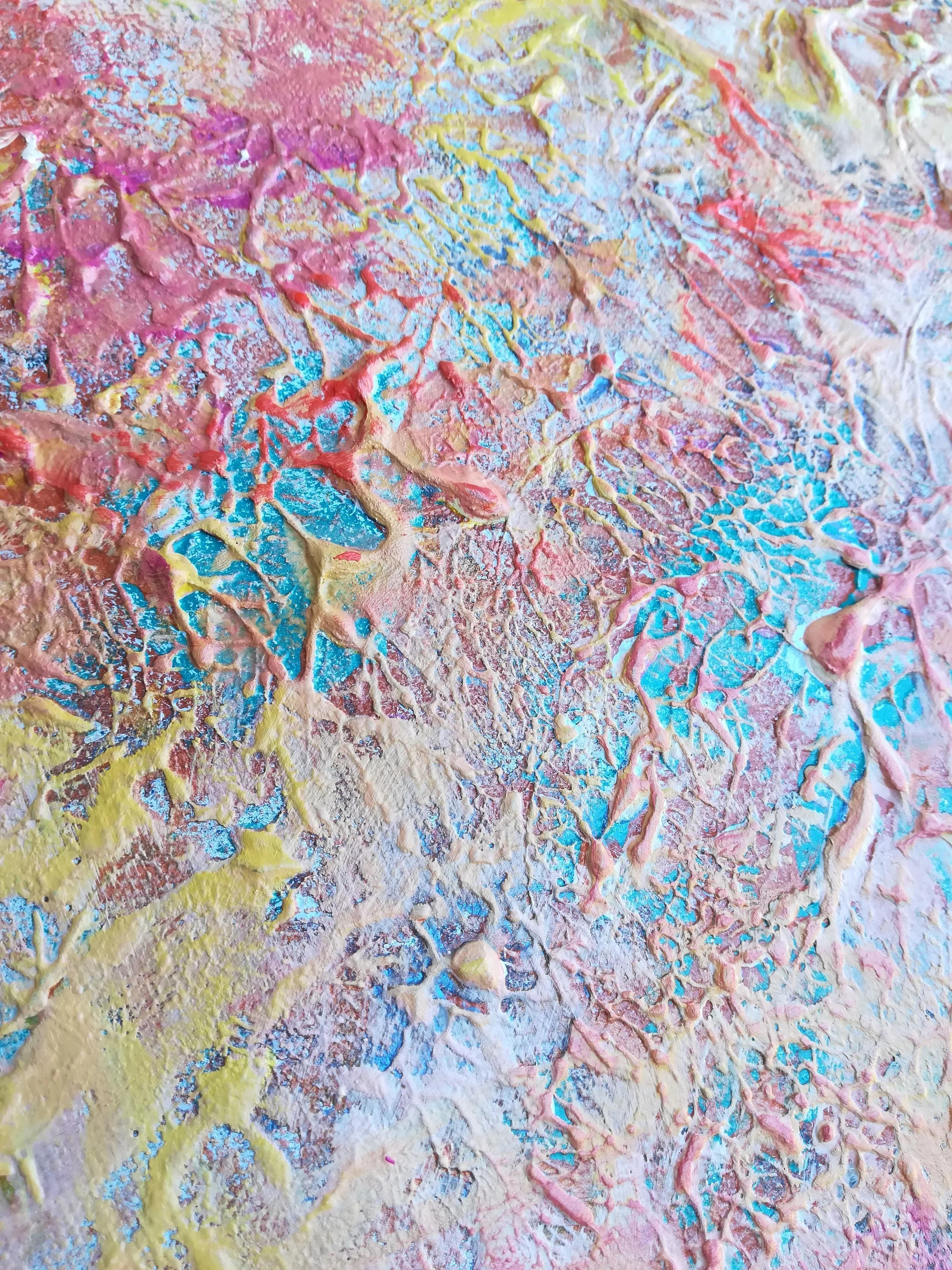 When pink rocks fall off our bag, we sit to laugh and can't count the glue that dries off the ceiling.